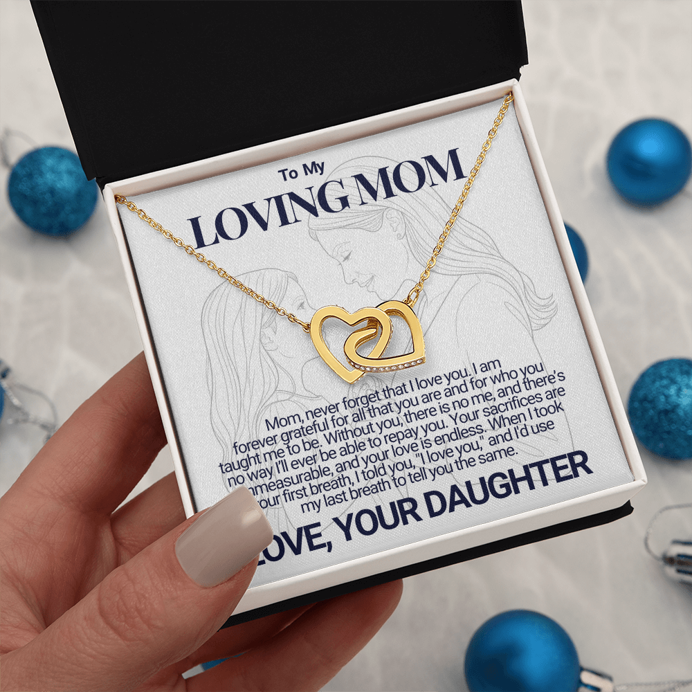 Give your mom the gift that symbolizes your never-ending love. Featuring two lovely hearts embellished with cubic zirconia crystals, this Interlocking Hearts necklace is the perfect accessory for everyday wear. Whether it's a memorable anniversary or a special birthday, make sure to dazzle your mom by gifting them this stunning necklace.